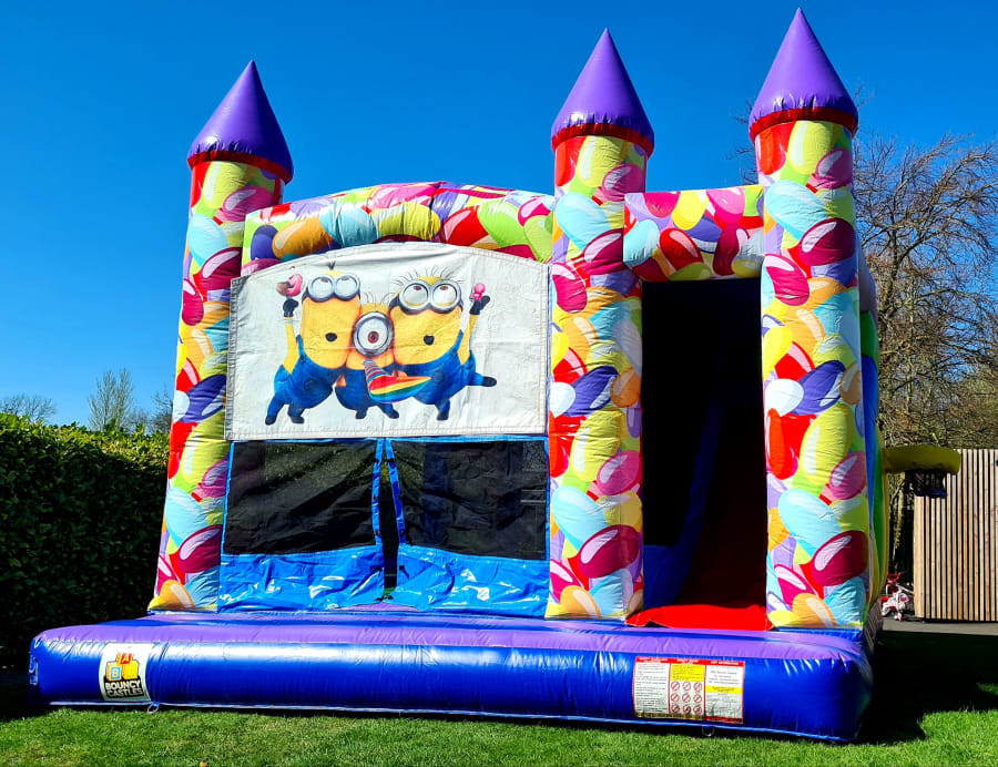 Elevate your next event with the thrilling and eye-catching Minions Candy 3n1 Castle, a must-have centerpiece for any party or gathering. This fun-filled bouncy castle combines the excitement of a castle, a thrilling 8ft high slide, and a basketball hoop, offering endless entertainment for both boys and girls. Perfectly adorned to captivate the imagination, it's no wonder this has been our most popular combi castle for over 20 years! 🎉