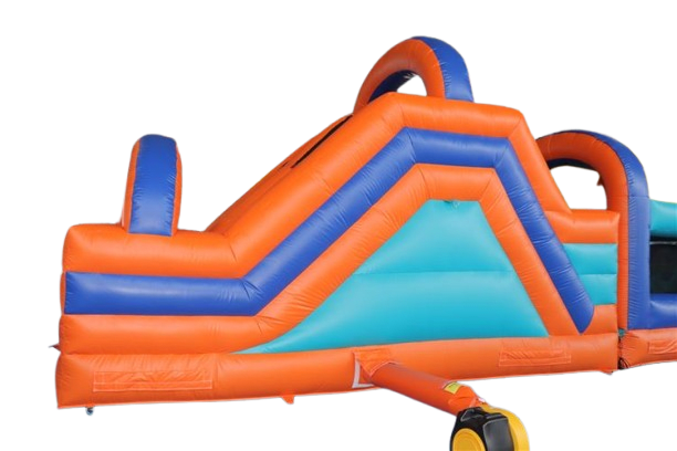 - Exciting Slide: Experience the rush as you zip down the steep slide, offering a thrilling end to your obstacle race.