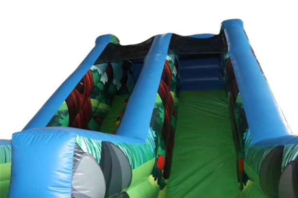 Standing tall with a 10ft High Slide and stretching over a massive 50ft long adventure run, this visually stunning inflatable promises an unforgettable adventure. The obstacle course features tunnels, bish bash, and bouncy areas designed to captivate and entertain. Not only is it an eye catcher at any event, but it also guarantees hours of endless fun for both boys and girls.