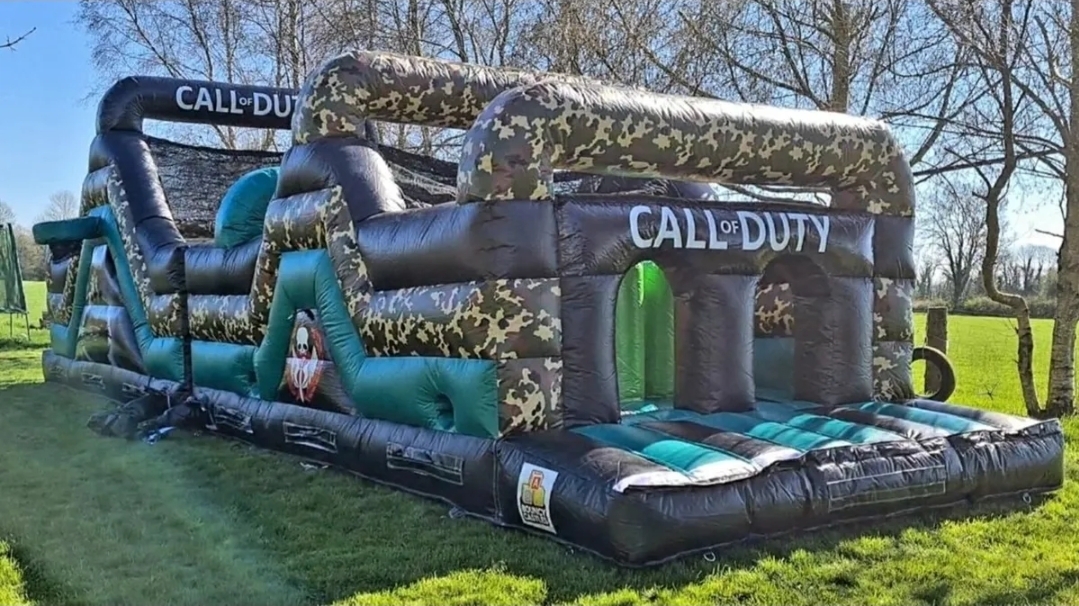 Our obstacle courses are designed to thrill and challenge kids of all ages with bright colours, exciting layouts, and fun themes – including popular favourites like53ft Mr Green Crocodile Obstacle Course, Army Zone Adventure Run, Call of Duty Eliminator Obstacle Course and many more!